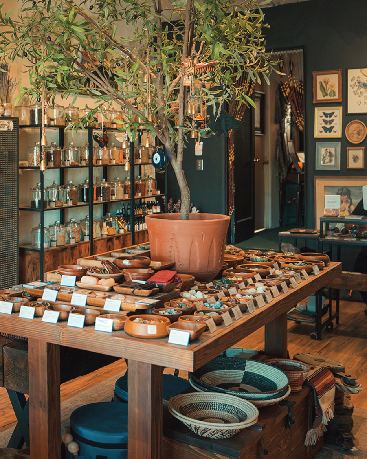In 2023, we opened our flagship store in the Twentynine Palms Historic Plaza, just minutes outside the north entrance of Joshua Tree National Park. The shop is a culmination of my life’s work, shaped by a shared passion between myself and my partner, Paul, for the beauty and wonder of the natural world. It brings together an herbal apothecary, rock shop, antique store, and shoppable natural history museum into one incredible space. Beyond the shop, our back room changes with the seasons, featuring hands-on immersive exhibits that range from galactic glow-in-the-dark rocks to rare oceanic specimens and fossils.